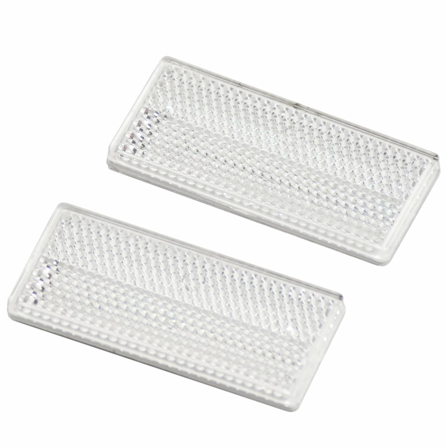 A pair of clear reflectors. Ideal for tailboard related applications. Self adhesive.