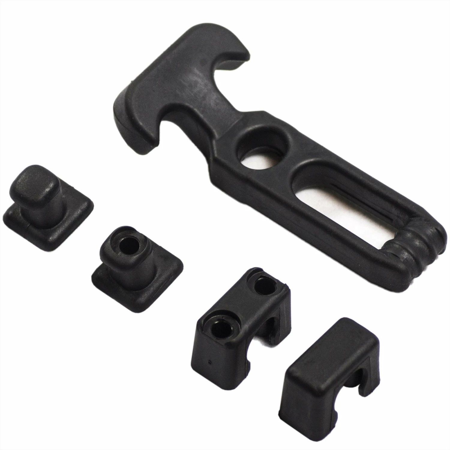 Flexible rubber hood fastener.