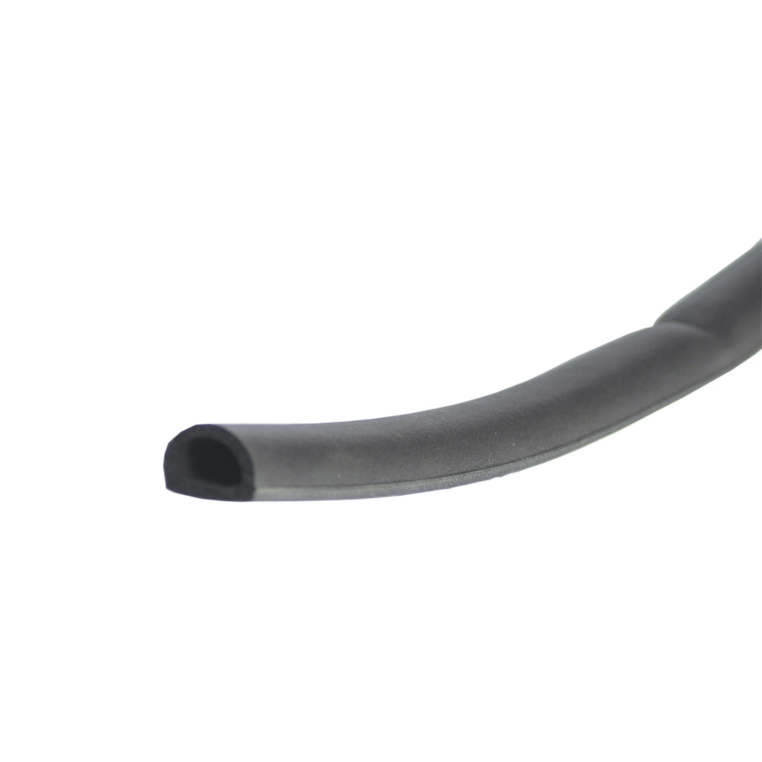 Rubber D extrusion. Self adhering. Ideal for toolboxes and other metal enclosures. Comes in a pre-packed roll of 5 meters