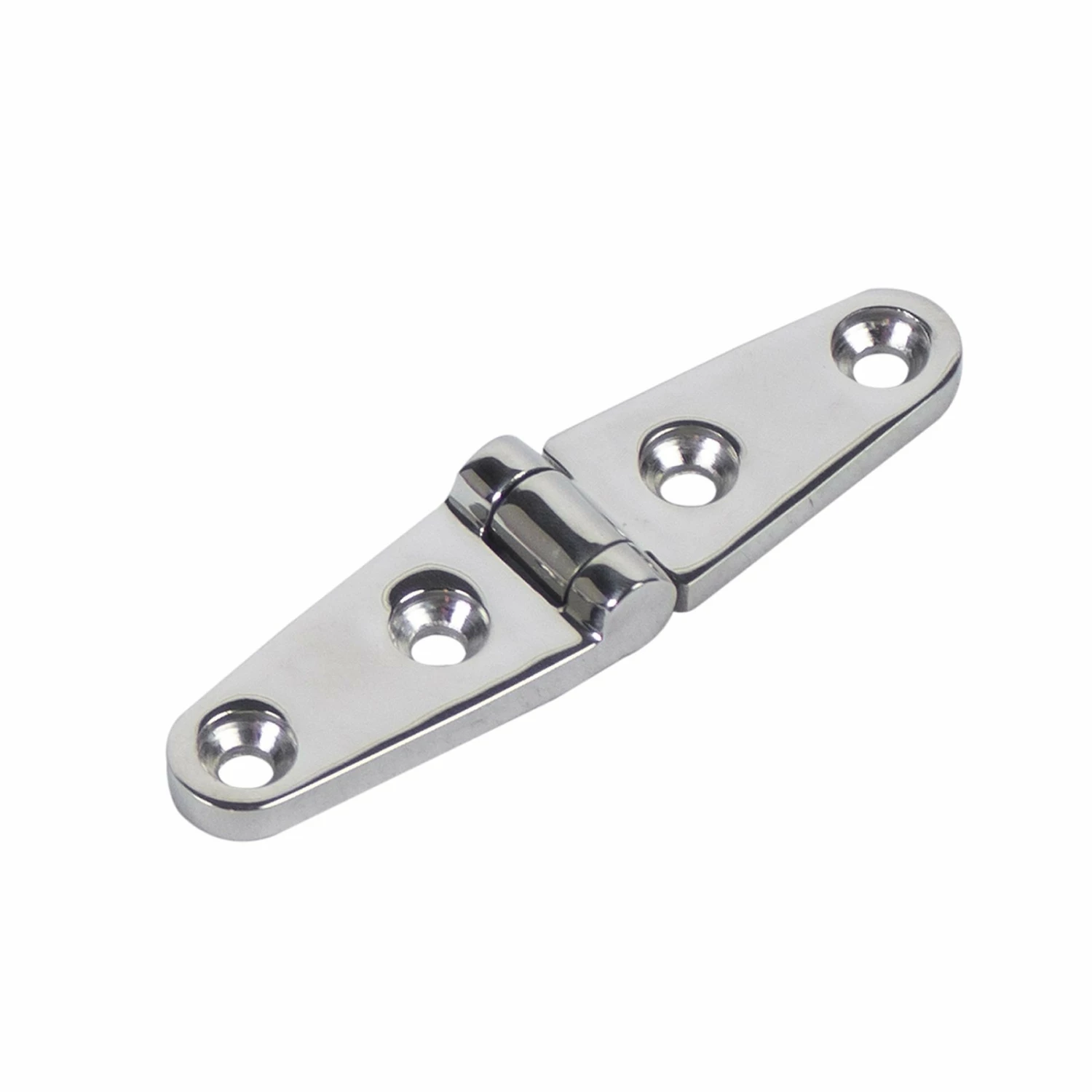 Small stainless steel gate hinge. Ideal for both indoor and outdoor applications. Polished stainless steel finish. Corrosion resistant and easy to install. Longer hinge leaf makes it easy to fix to posts and gates. Comes in pack of one.