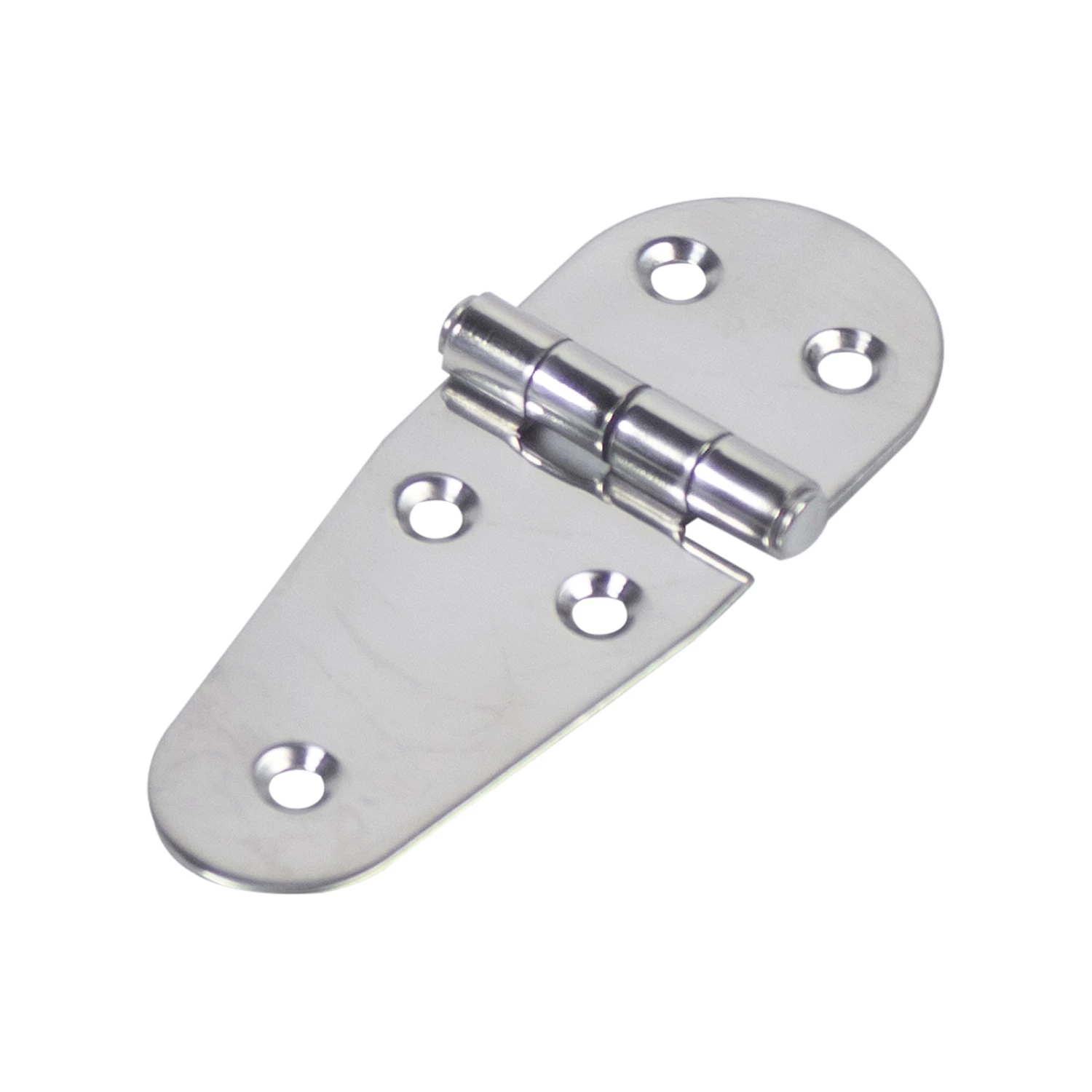 Small stainless steel uneven hinge. Ideal for both indoor and outdoor applications. Polished stainless steel finish. Corrosion resistant and easy to install.