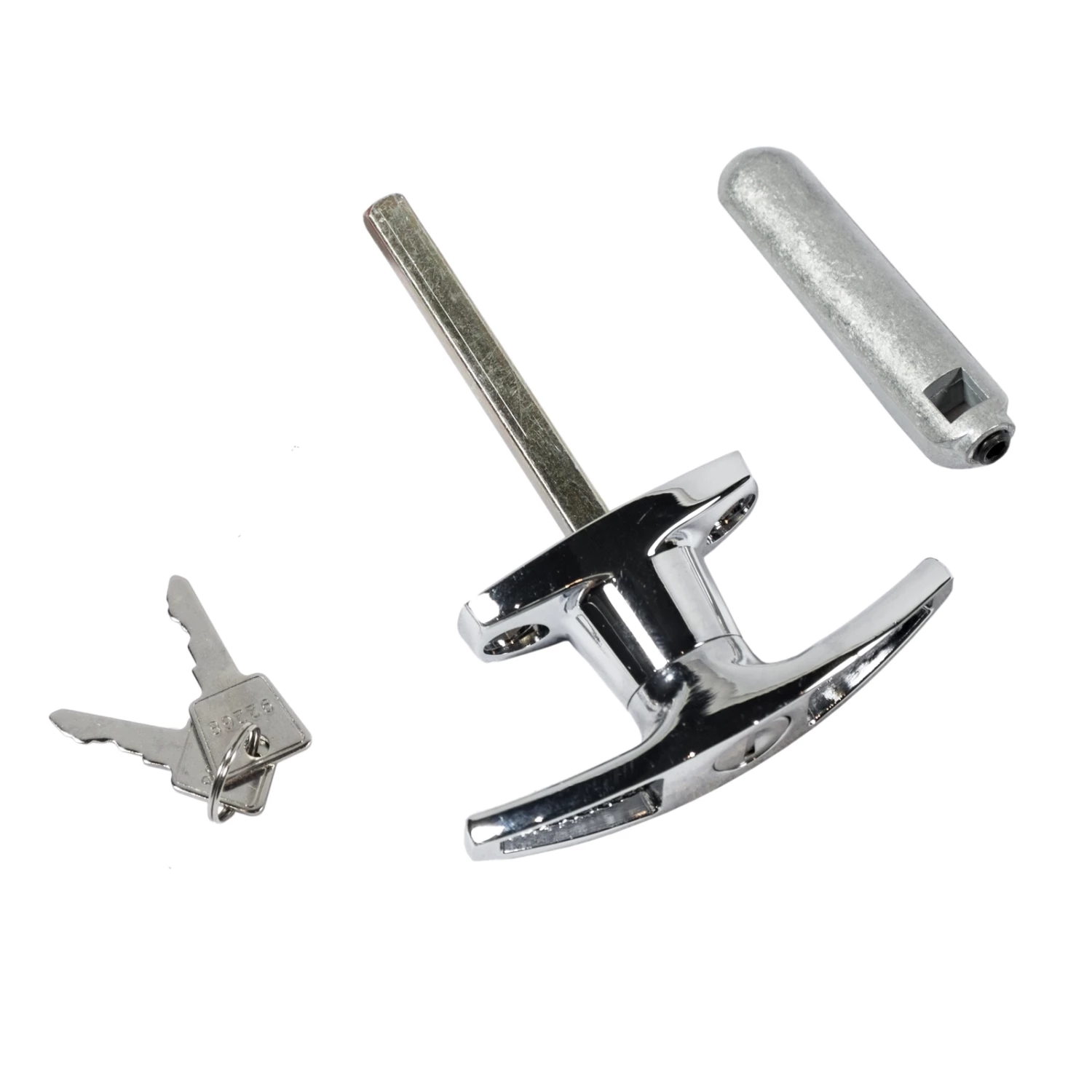 The Goliath T Handles are ideal for many automotive and industrial applications. Commonly used for garage doors, vehicle trays, and horse & animal trailers. Front fixing and includes keys & latch tongue. Square drive shaft makes it compatible with many brands of latch and rod systems.